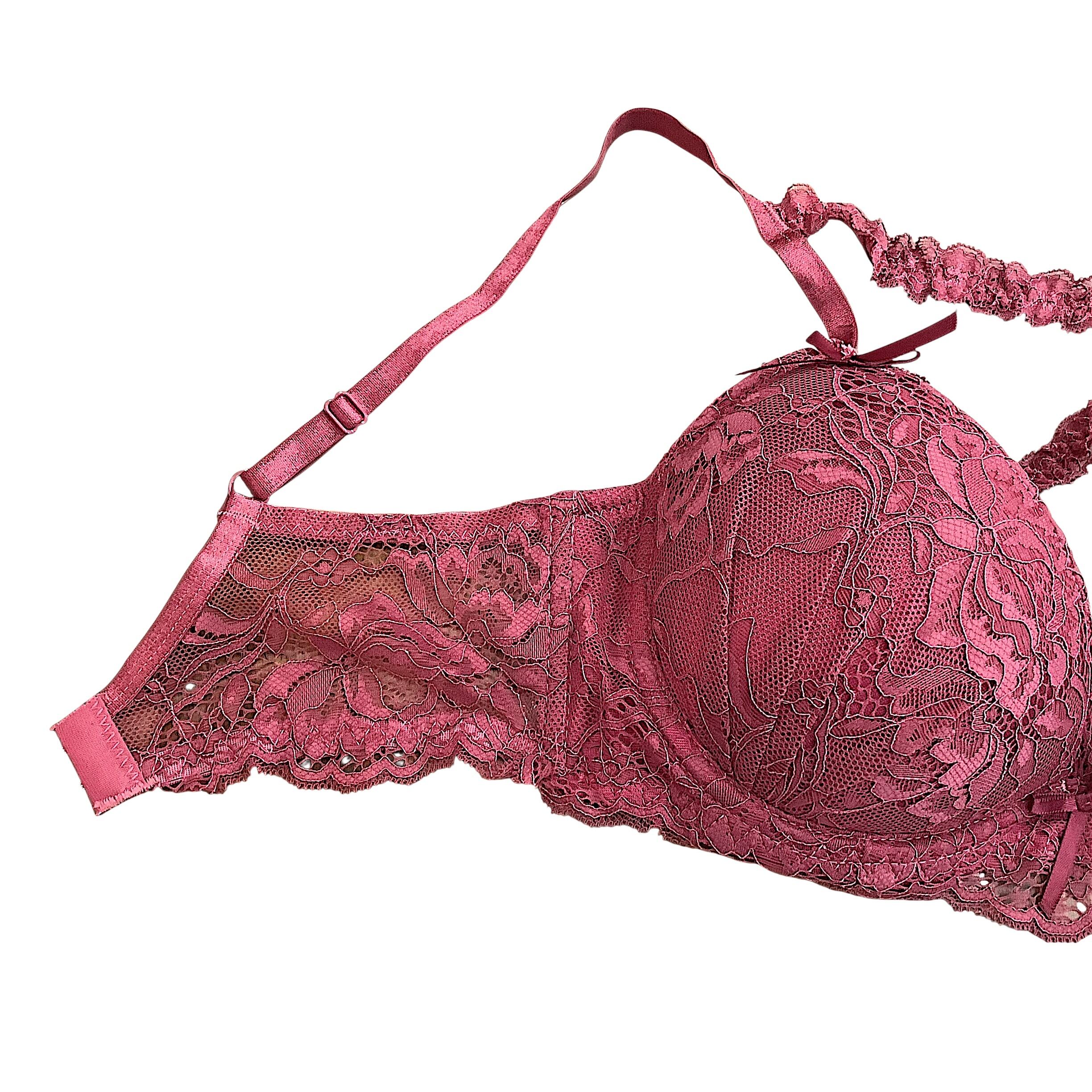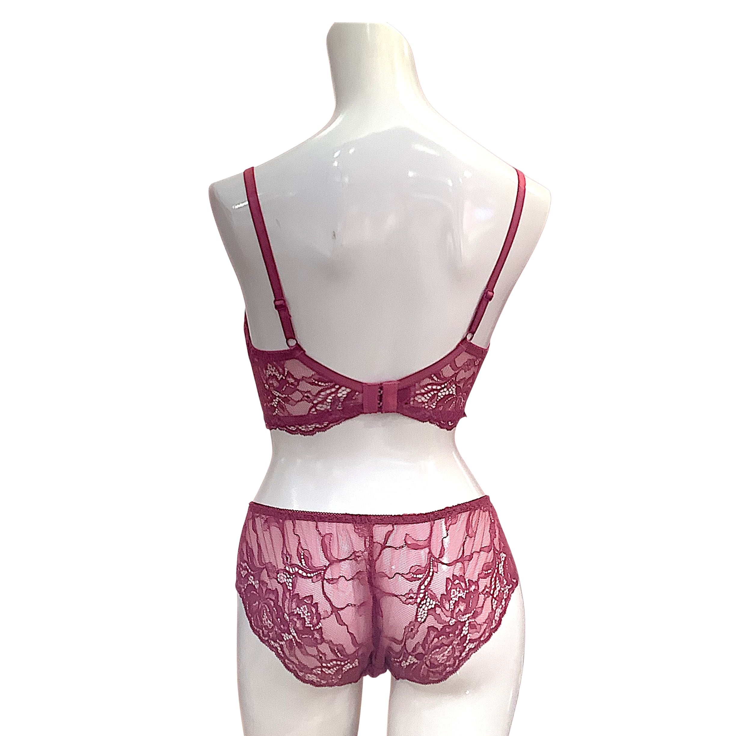 華やかなローズカラーが印象的なレースブラ&ショーツ。胸元のクロスデザインが自然に谷間を寄せ、セクシーでありながら安定感のある着け心地を実現します。ショーツは繊細な総レース仕立てで、ヒップラインを美しく魅せながら軽やかな履き心地。特別な日のランジェリーとしてはもちろん、気分を上げたい普段使いにもおすすめです。幅広い年代の女性に似合うカラーで、自分用にもギフトにも喜ばれるアイテムです。