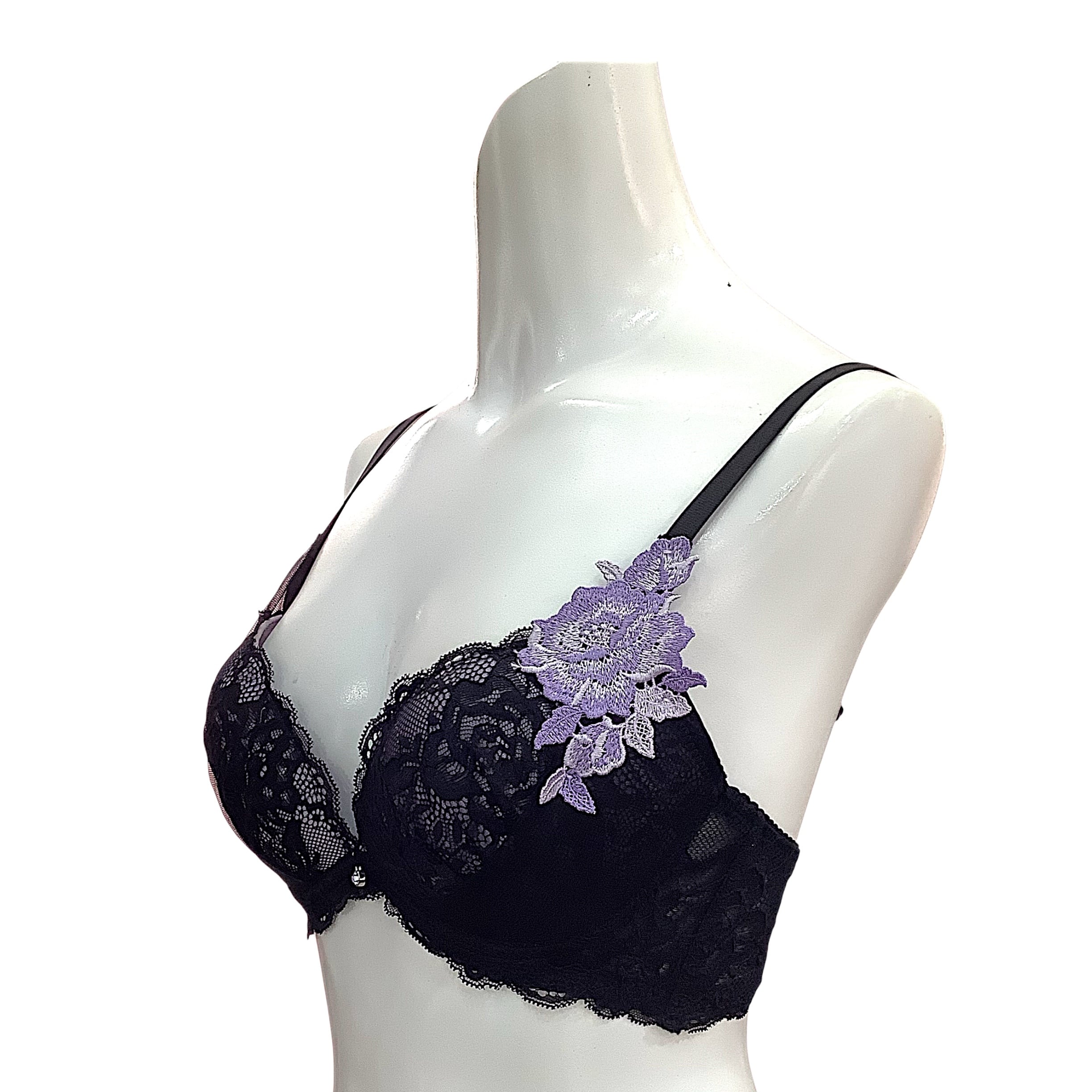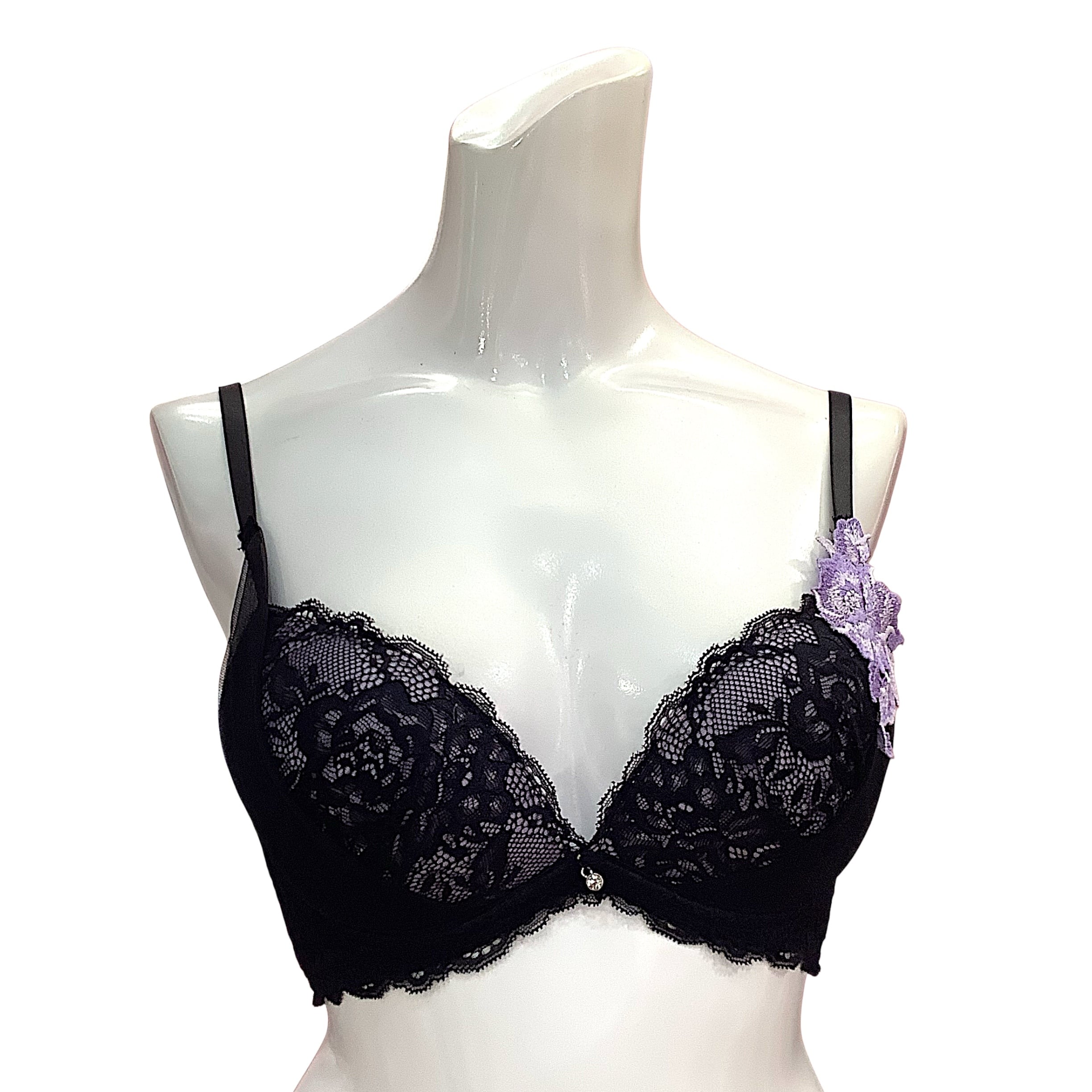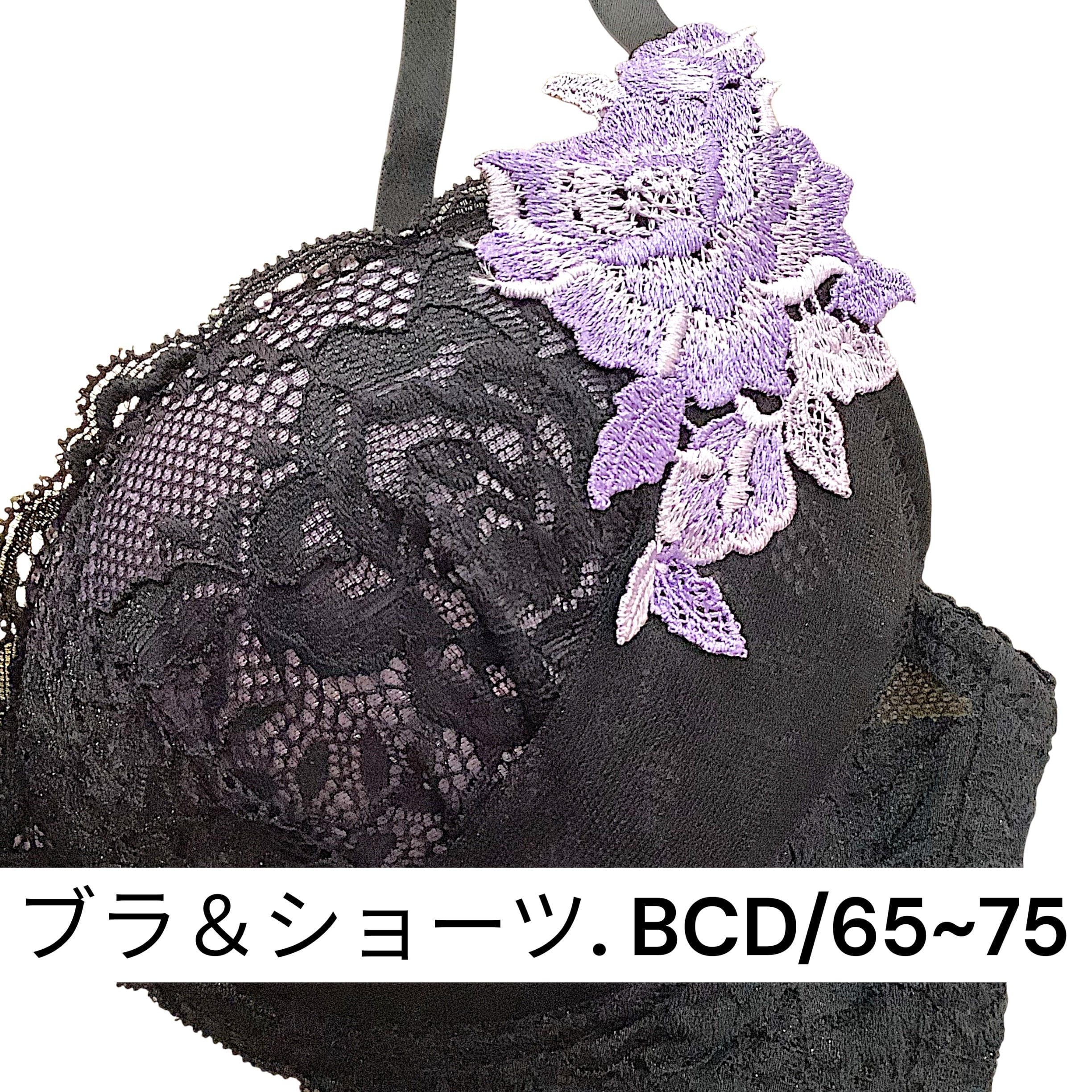 黒の繊細なレースにラベンダーカラーの花モチーフをあしらった大人可愛いブラ&ショーツセット。谷間をしっかり寄せて立体的に補正し、美しいシルエットを演出します。上品で落ち着いた雰囲気を保ちながら華やかさも漂い、普段のデイリー使いから特別な日まで幅広く活躍。快適な着け心地で長時間の使用も安心できるとレビューでも好評。自分へのご褒美や大切な人へのギフトにもおすすめの、安心感と美しさを兼ね備えたランジェリーです。