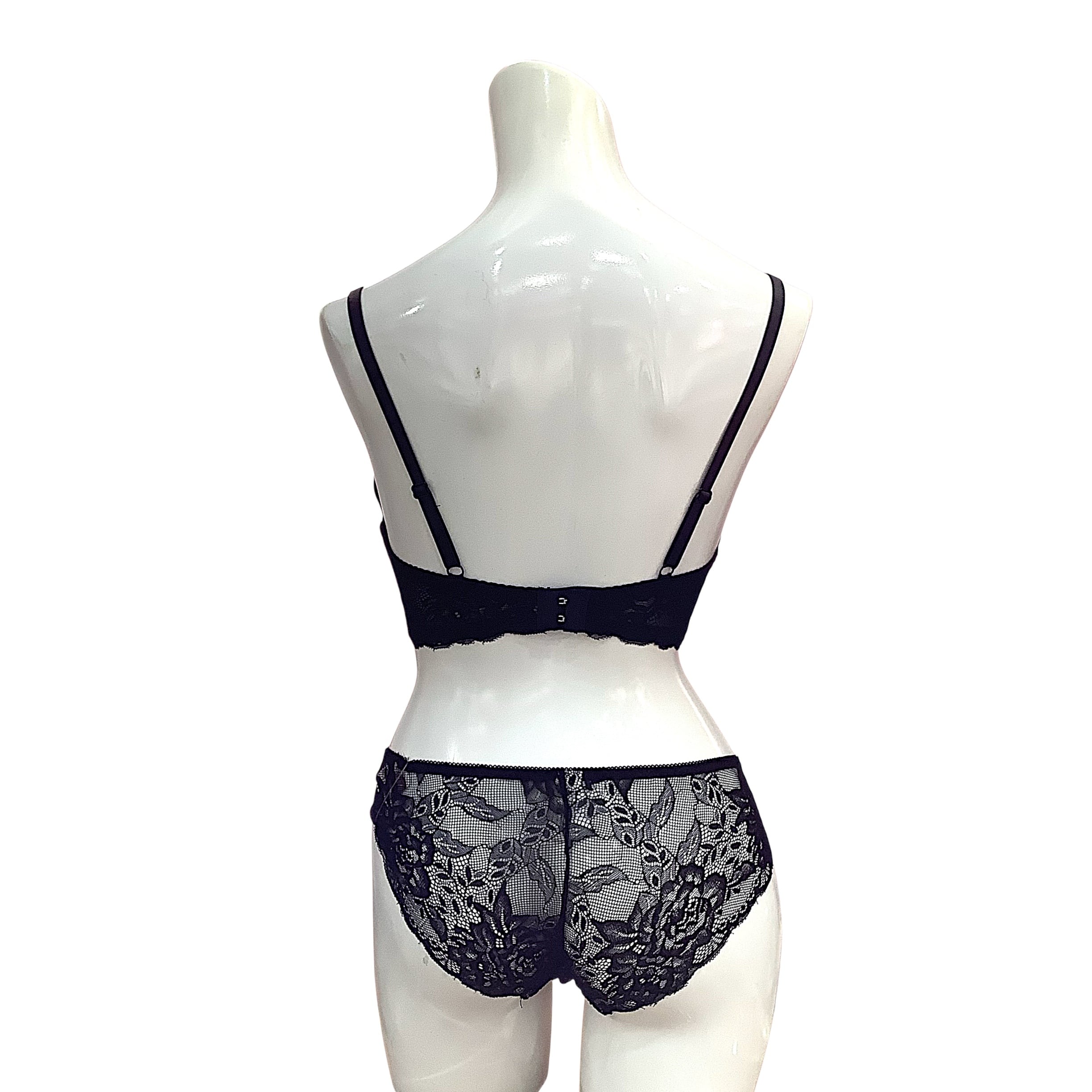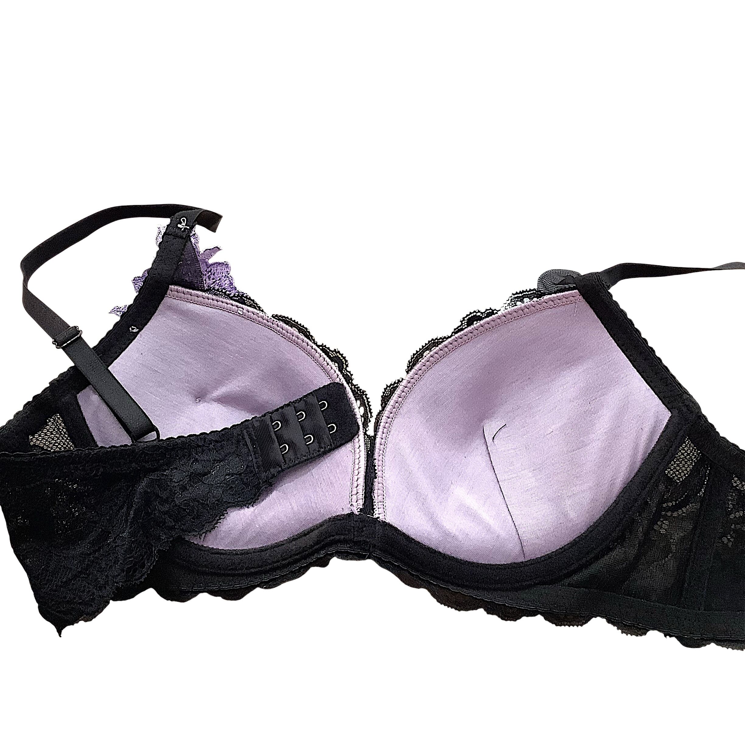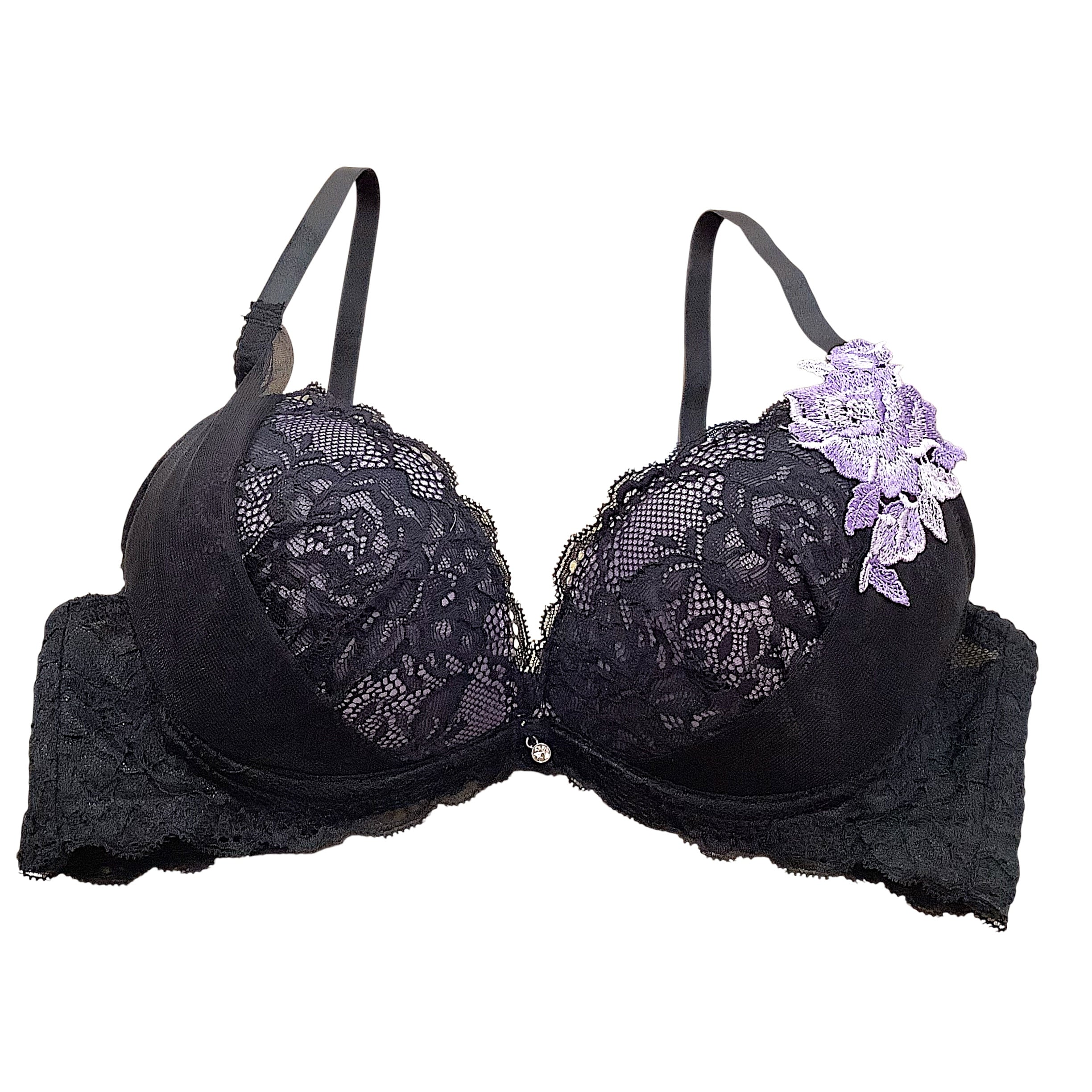 黒の繊細なレースにラベンダーカラーの花モチーフをあしらった大人可愛いブラ&ショーツセット。谷間をしっかり寄せて立体的に補正し、美しいシルエットを演出します。上品で落ち着いた雰囲気を保ちながら華やかさも漂い、普段のデイリー使いから特別な日まで幅広く活躍。快適な着け心地で長時間の使用も安心できるとレビューでも好評。自分へのご褒美や大切な人へのギフトにもおすすめの、安心感と美しさを兼ね備えたランジェリーです。