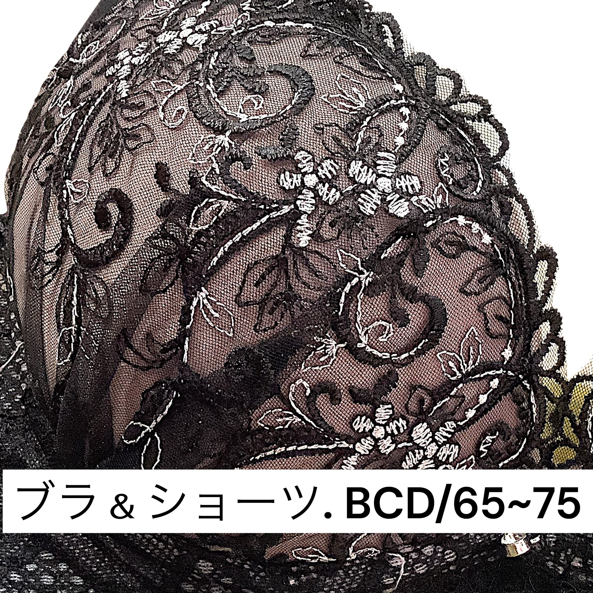 k-BC【954800black】黒レース刺繍美胸ブラ&ショーツ