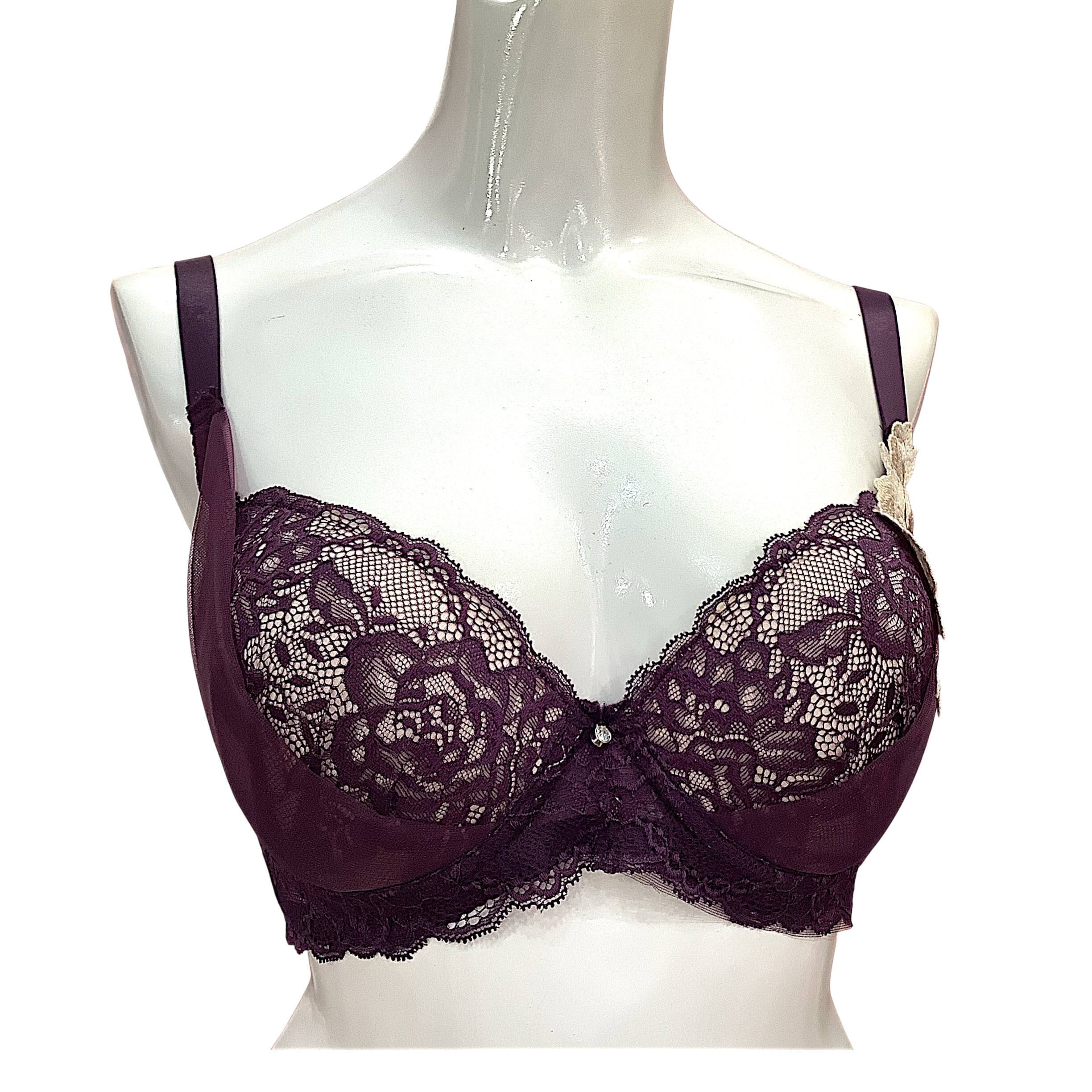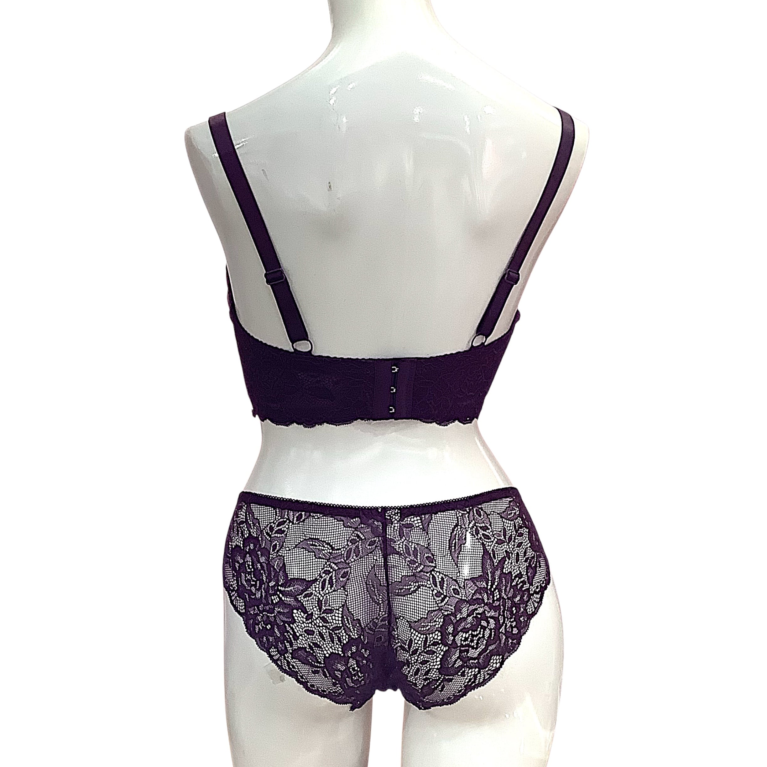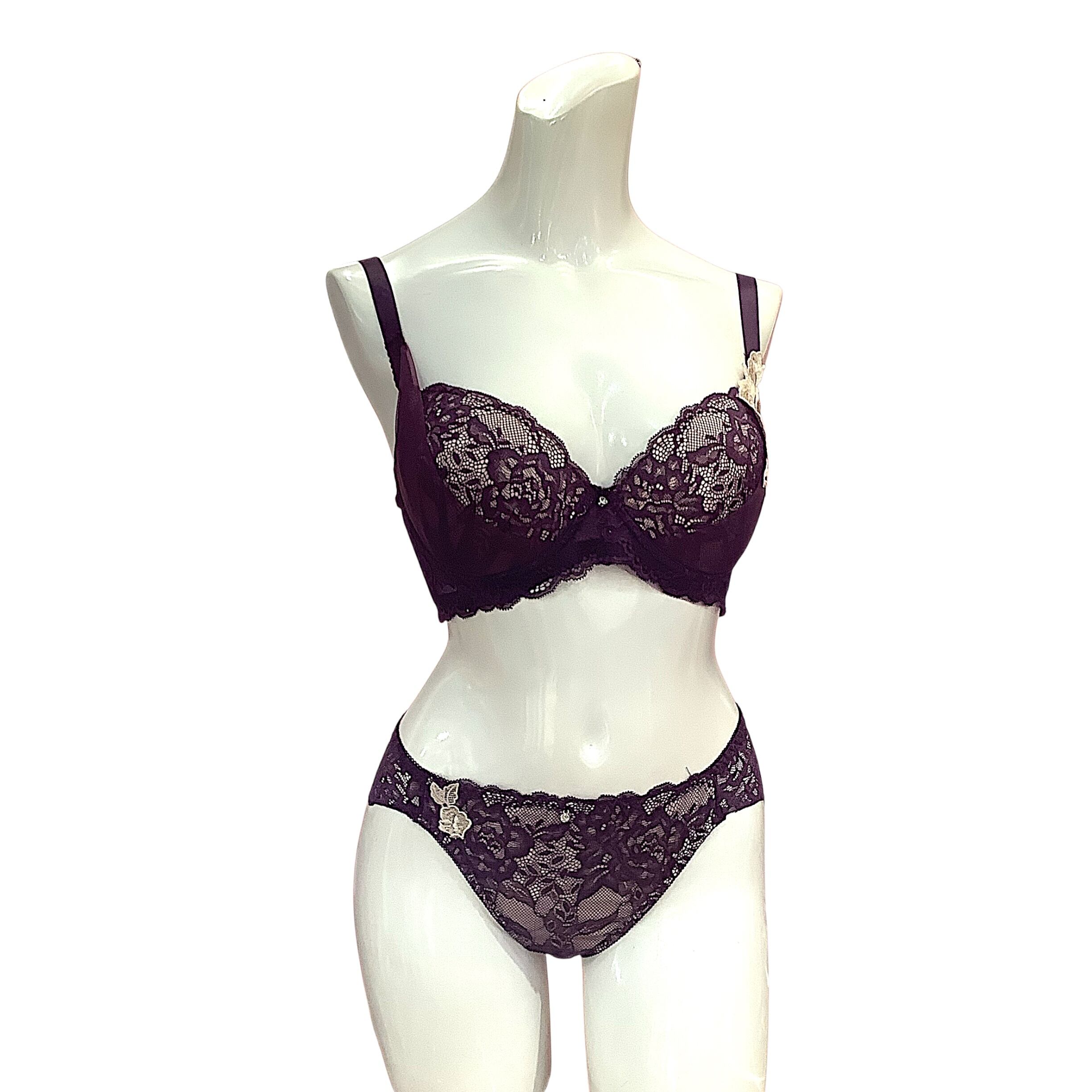 k-EF【954601purple】大きめ胸対応ボルドーレースブラ&ショーツ
