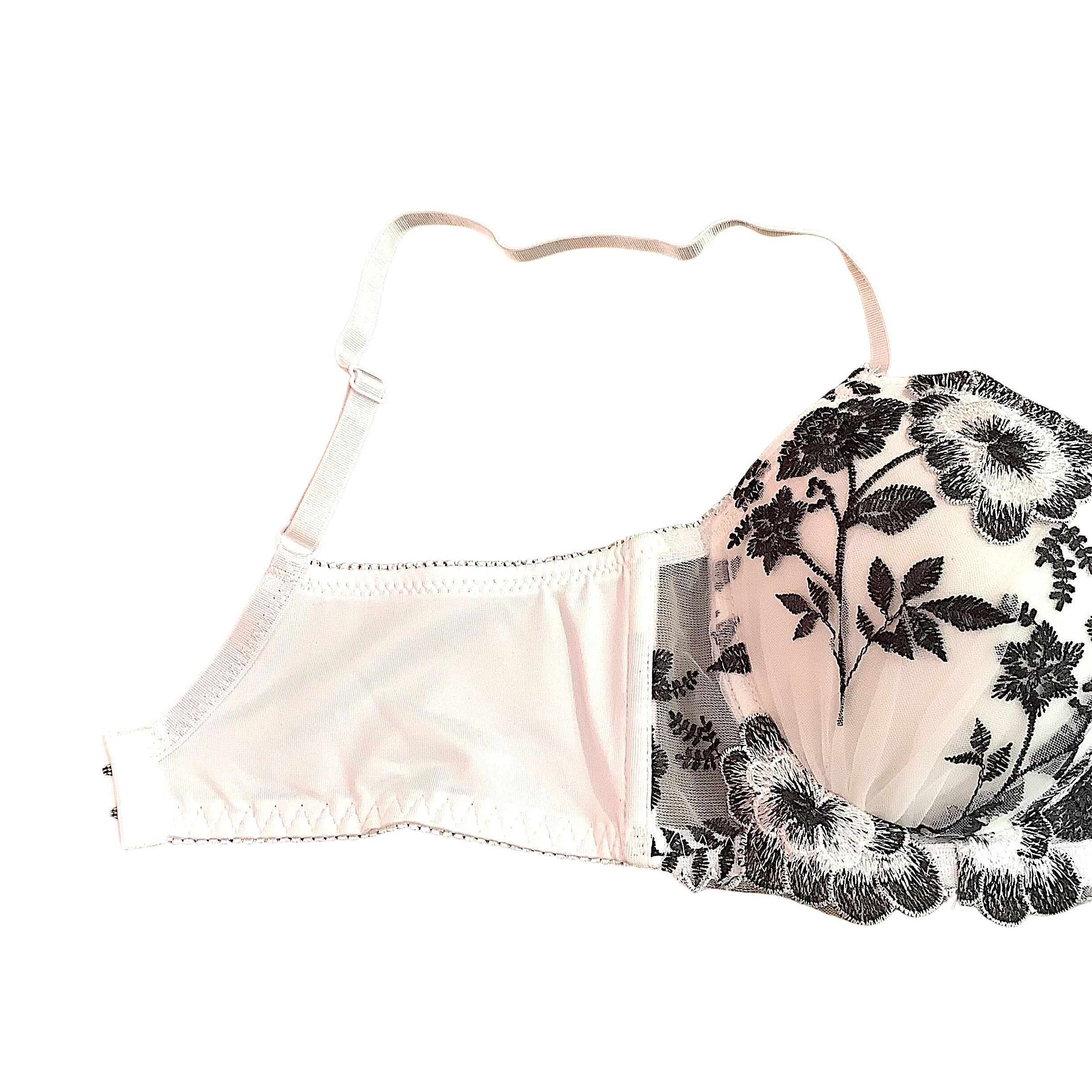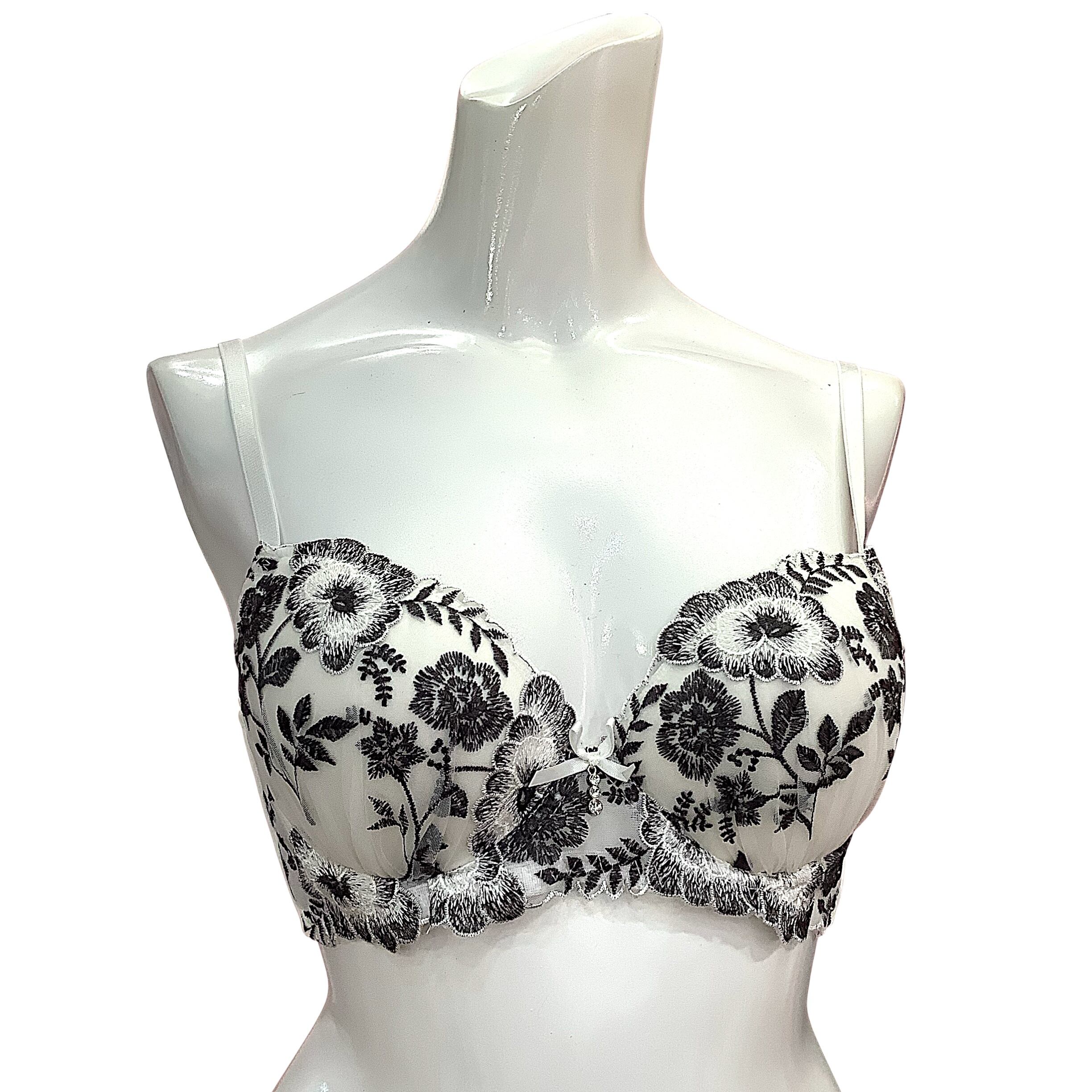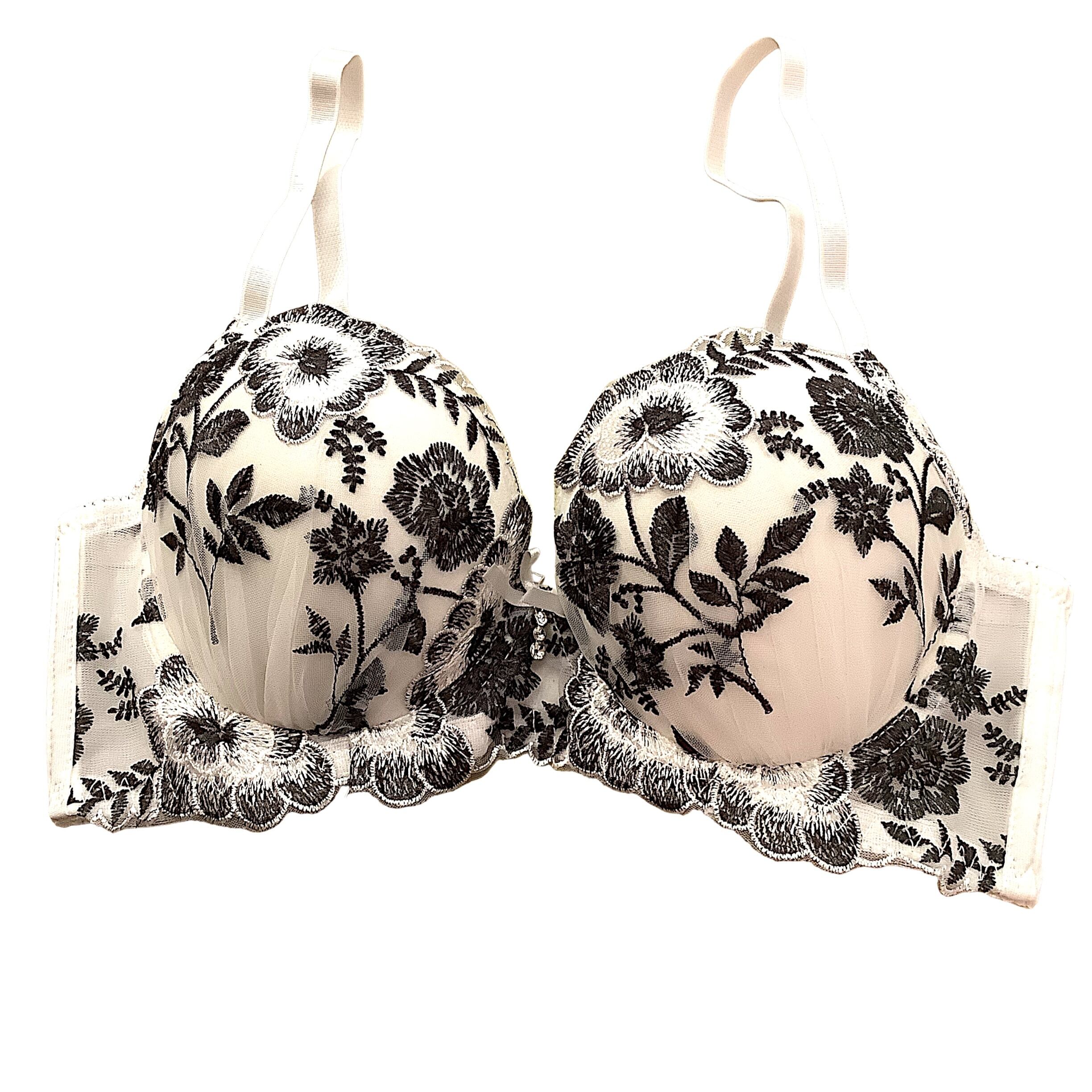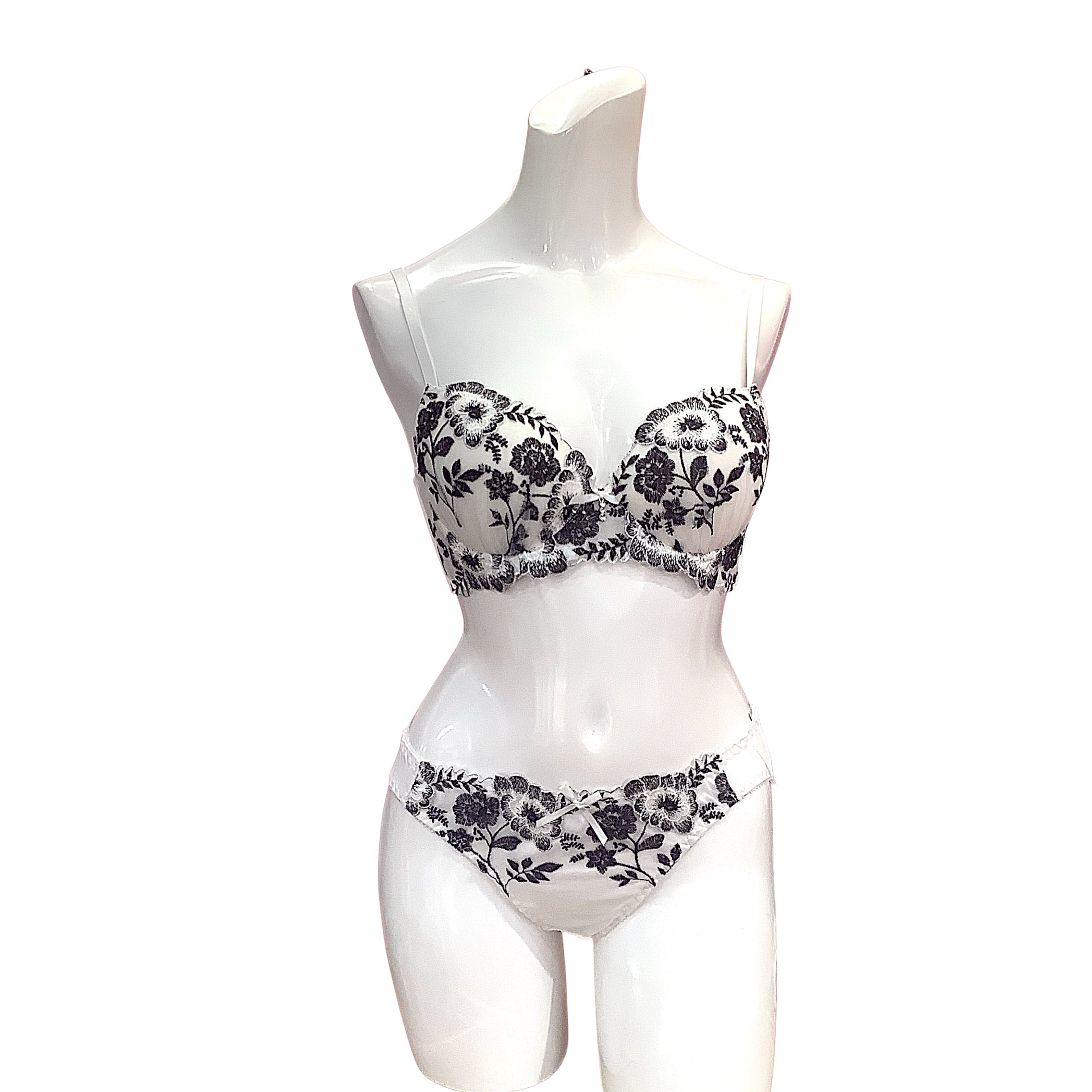 k-N 【76141white 】白黒刺繍ノンワイヤーブラ&ショーツ