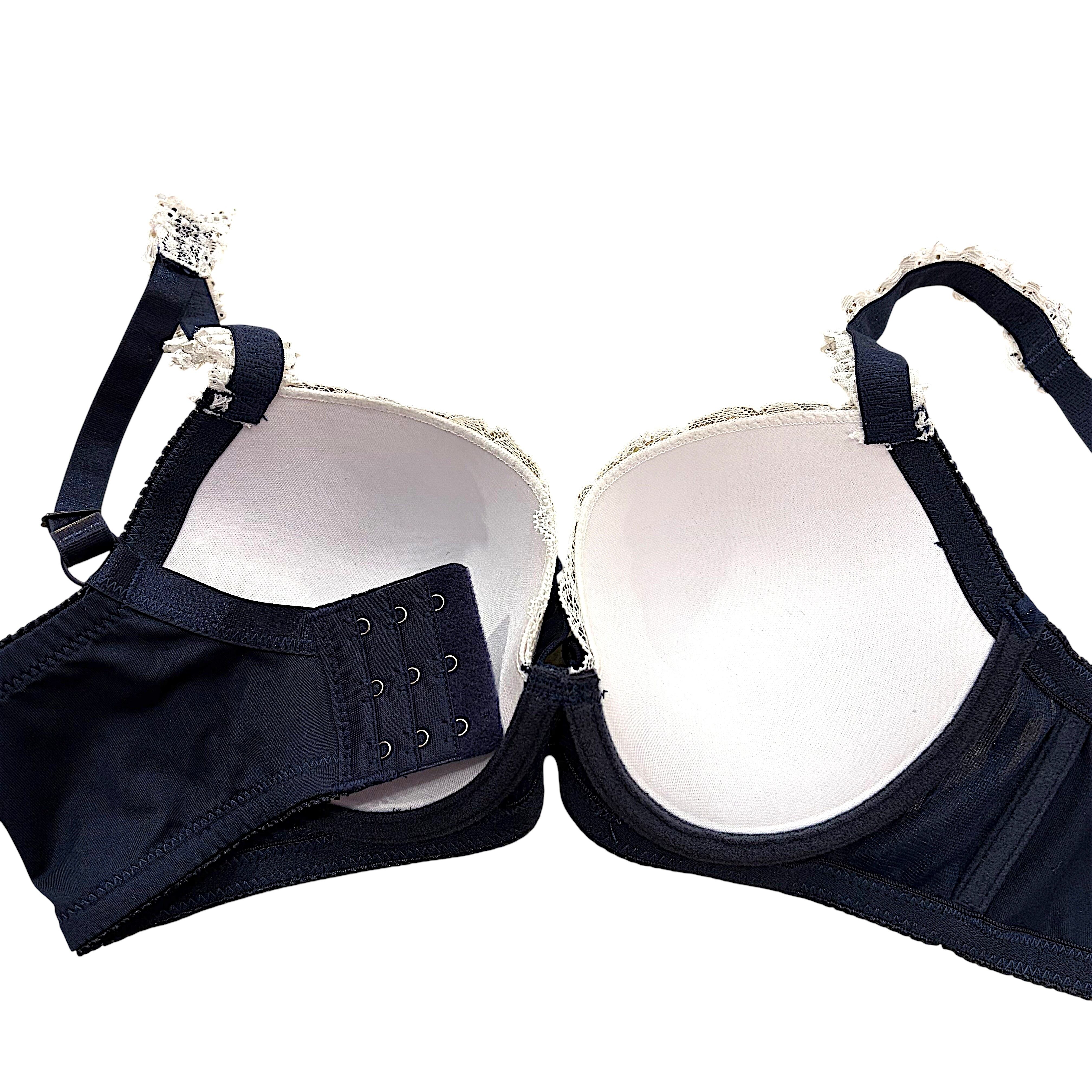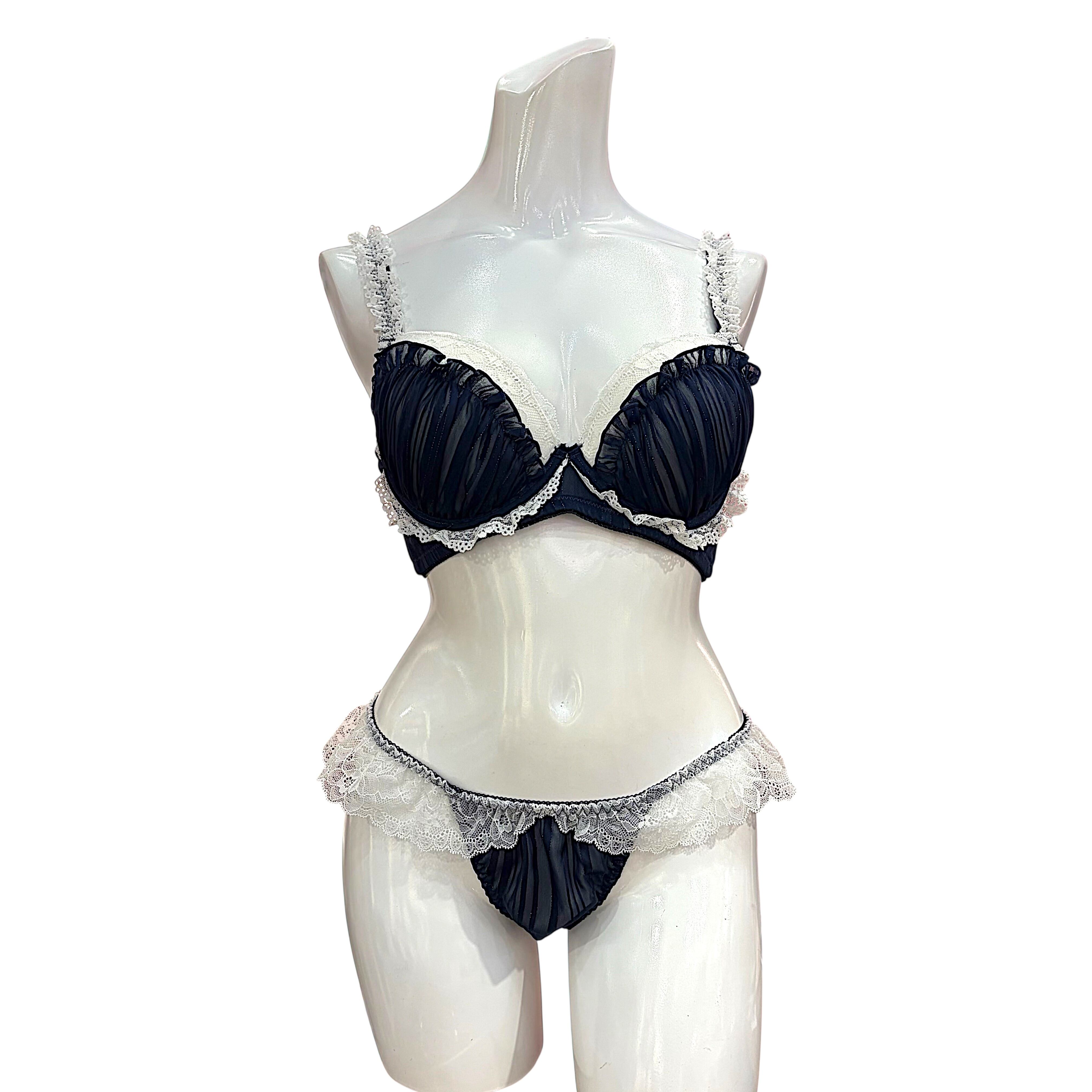 深みのあるネイビーカラーが大人の魅力を引き立てる、G・Hカップ対応のランジェリーセット。繊細なホワイトレースと柔らかなフリルが重なり、上品で洗練された印象に。立体カップ構造でバストをしっかり包み込み、丸みのある美しいシルエットをキープ。幅広ストラップで安定感も抜群です。普段使いはもちろん、特別な日や気分を上げたい時にもおすすめ。レビューでは「フィット感が良く安心」「色味が高級感ある」と好評。大人の上品さと可愛らしさを兼ね備えたランジェリー。