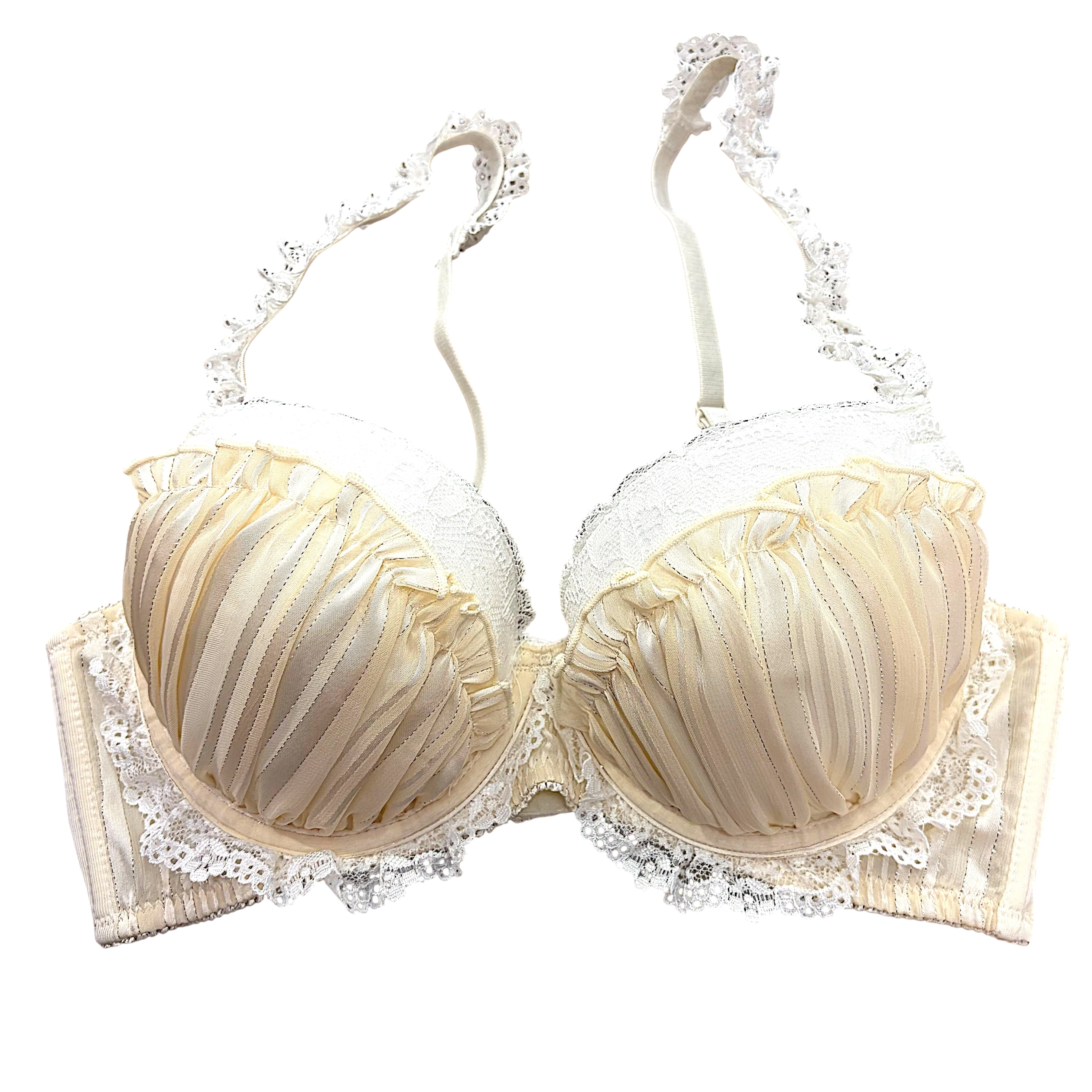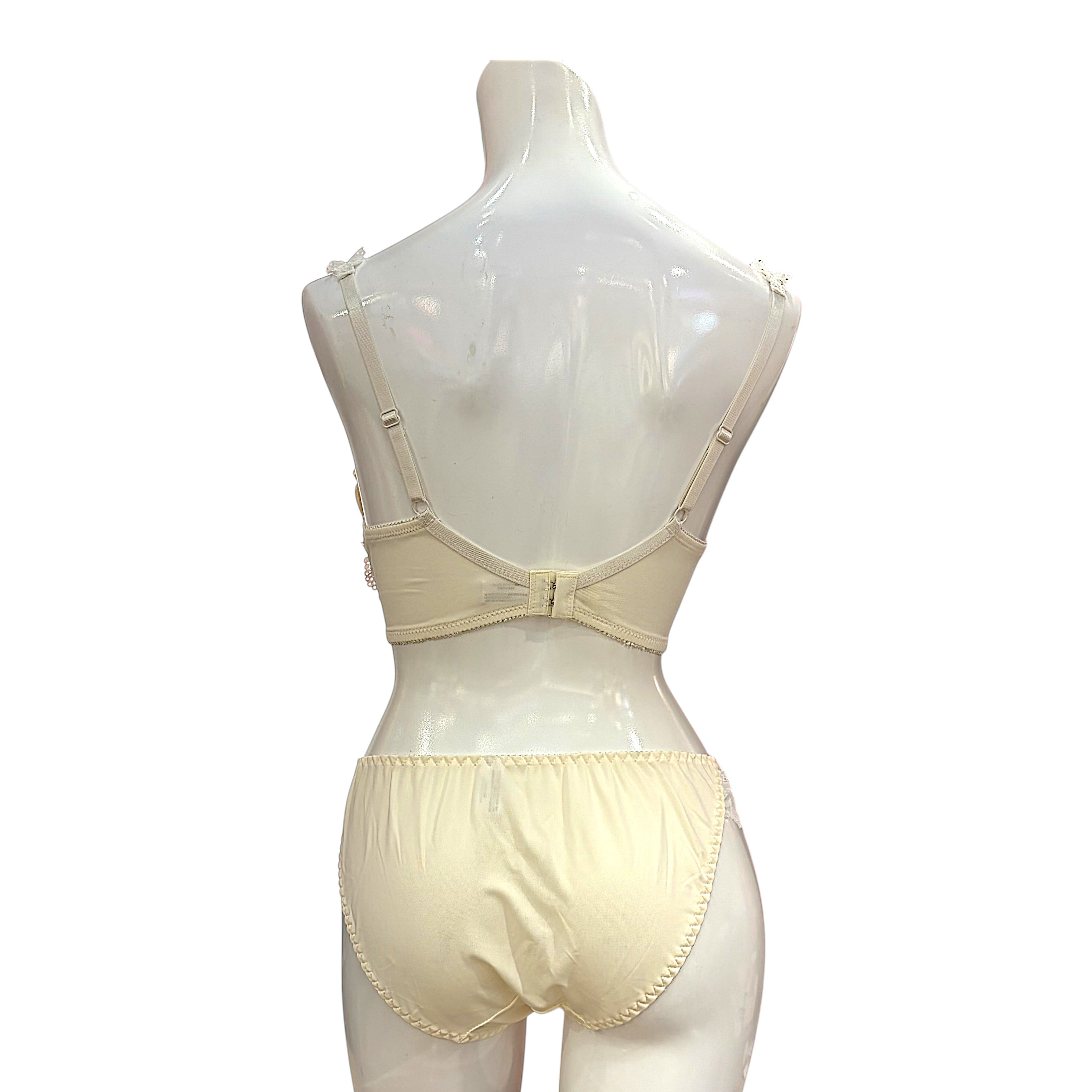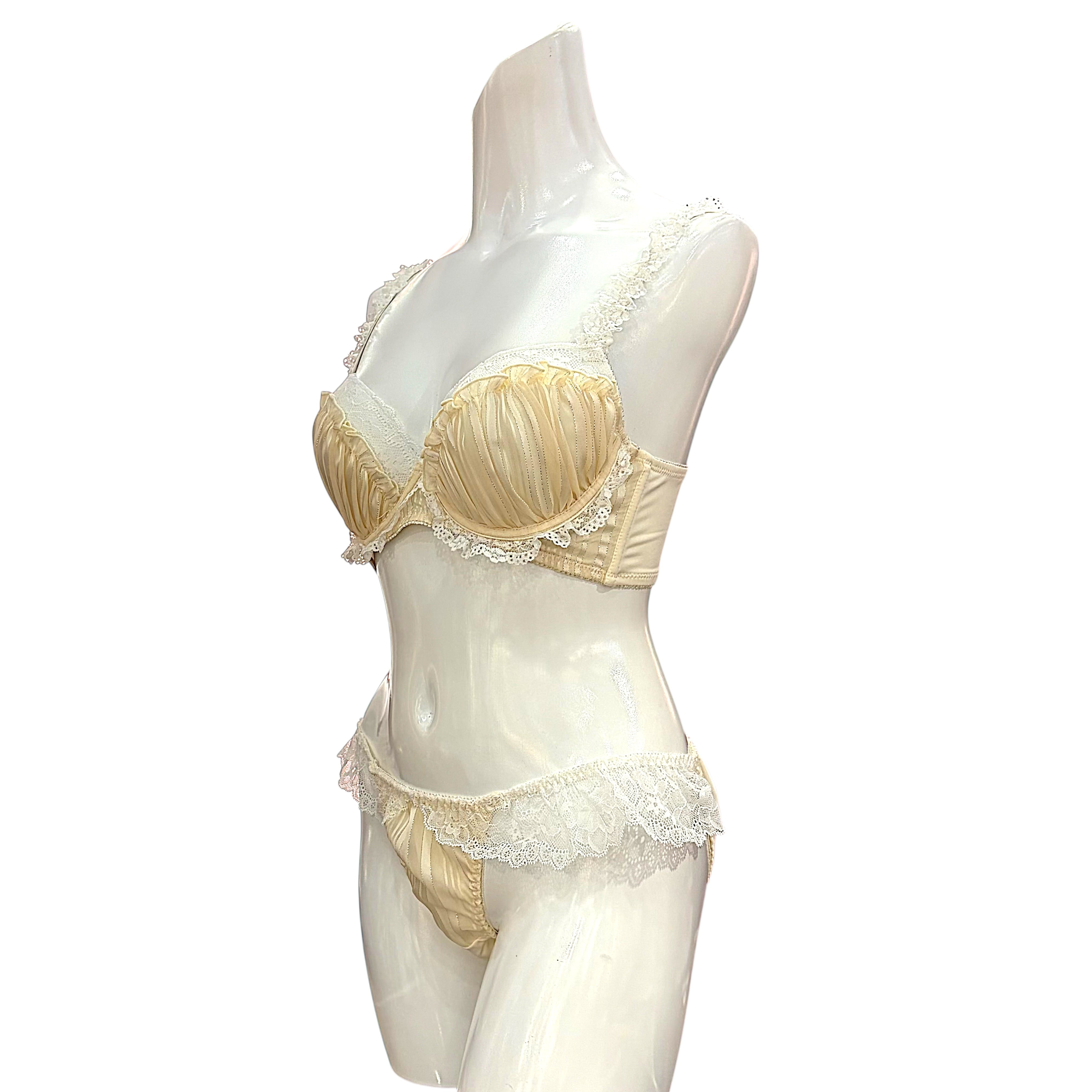 「ワイヤーの締め付けが苦手」「ナチュラルな着け心地が好き」そんな女性にぴったりのノンワイヤーブラ&ショーツセット。淡いアイボリーカラーにホワイトレースを重ねた上品なデザインで、肌なじみが良く、優しくフェミニンな印象に。軽く柔らかなカップが自然な丸みを作り、ワイヤーなしでも美しいシルエットをキープします。ショーツはサイドフリルが腰まわりを華奢に見せ、後ろはすっきりラインでひびきにくい仕様。デイリーはもちろん、リラックスタイムや旅行にも最適。レビューでは「着け心地が軽くて快適」「見た目も可愛い」と好評の人気アイテムです。